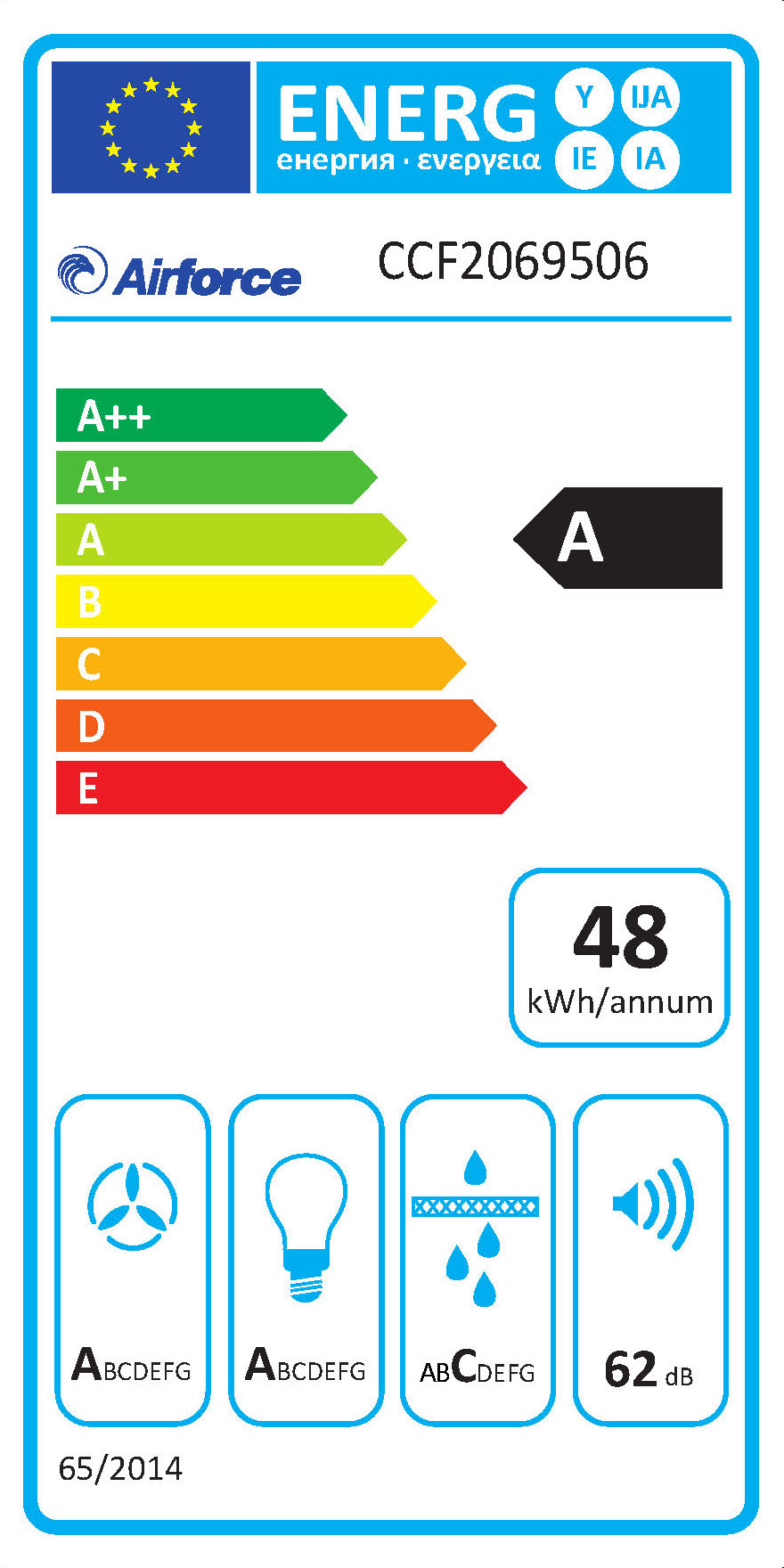 Energieeffizienzklassen und Spektren: Backöfen, Herde und Dunstabzüge A+++ - D. Geschirrspüler und Kühl-/Gefrierschränke A - G und Leuchtmittel A++ - E.